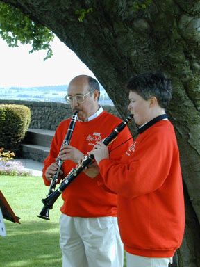 Time: Friday May 26, 4.35 pm Stirling Castle finished off day 1 - the weather, variable throughout the day, held up and we were able to play in the delightful surroundings of the Queen Anne Gardens. |